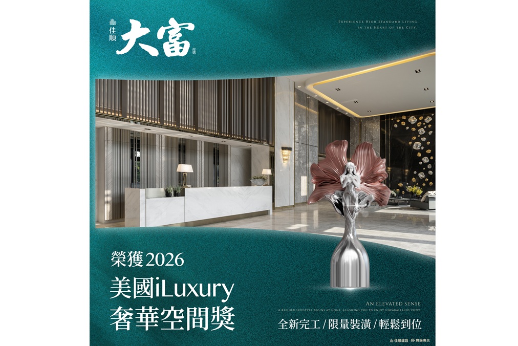 【快訊】再添世界級殊榮|『佳順大富』榮獲2026美國iLuxury奢華空間與精品設計大獎 優勝